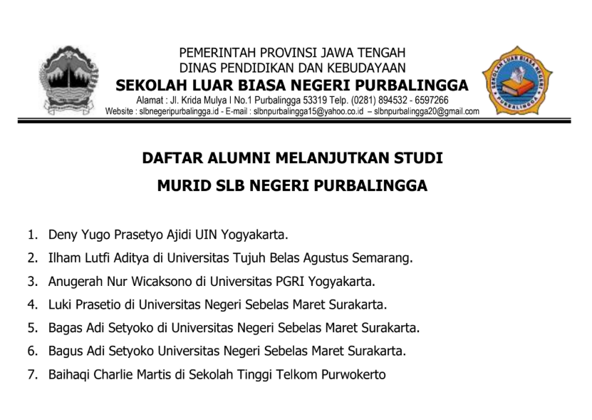 Murid SLB Negeri Purbalingga yang melanjutkan studi